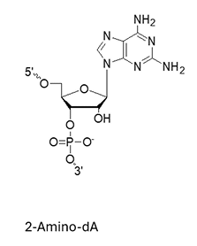Strengthens duplex stability and enhances base-pairing specificity. This extra bonding also helps prevent A-G wobble mismatches, By reinforcing the correct A-T pairing, 2-Amino-dA reduces the likelihood of such errors.