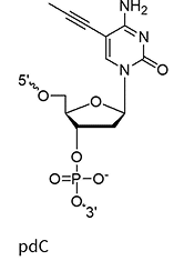 Propynyl replaces the methyl group on cytosine (pdC) C-5 position